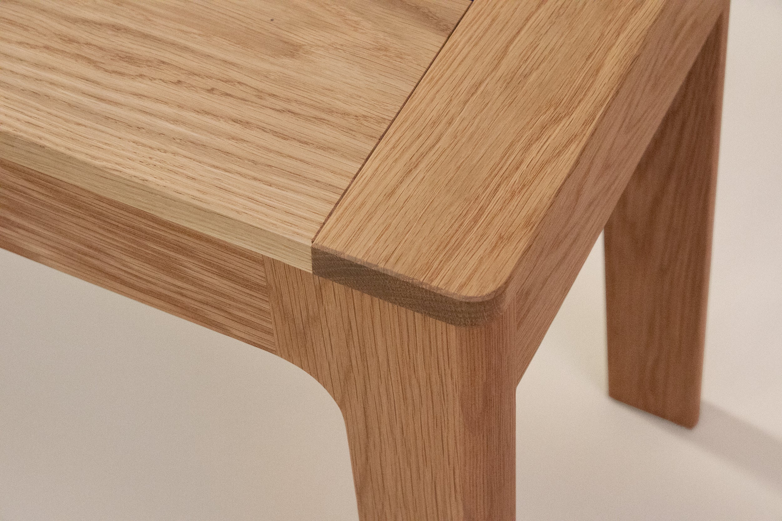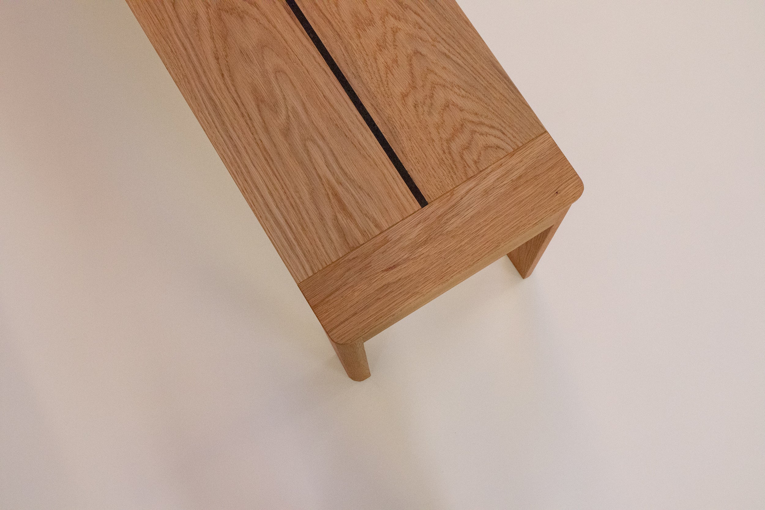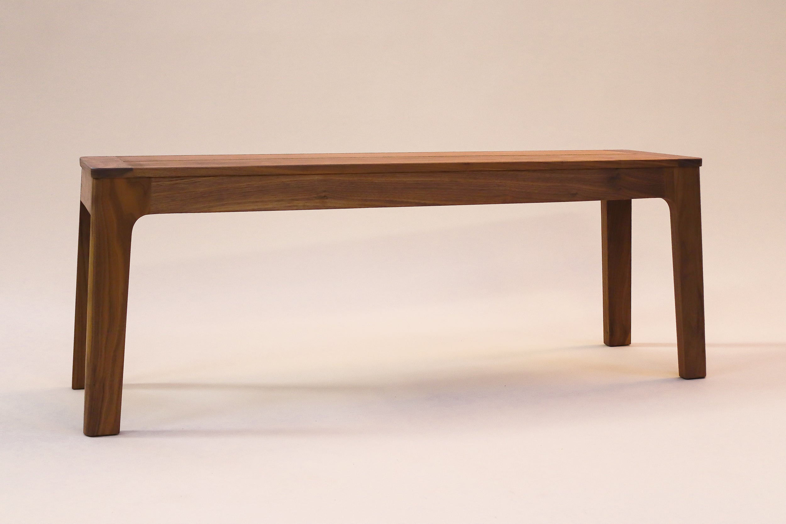Arno? Ah, Yes! That's the standard response to our latest offering in the world of bench seating, and for good reason. The Arno features a unique charcoal cork expansion joint to its top and solid breadboard ends, each delineated by a subtle, hand-planed chamfer at the joint. The outer edges of the joint are fixed so that all expansion and contraction happens at the cork joint and the perimeter of the top remains perfectly flush regardless of seasonal effects on the timber's movement. Pictured here is the 1200 mm variant in both rich walnut and crisp white oak.