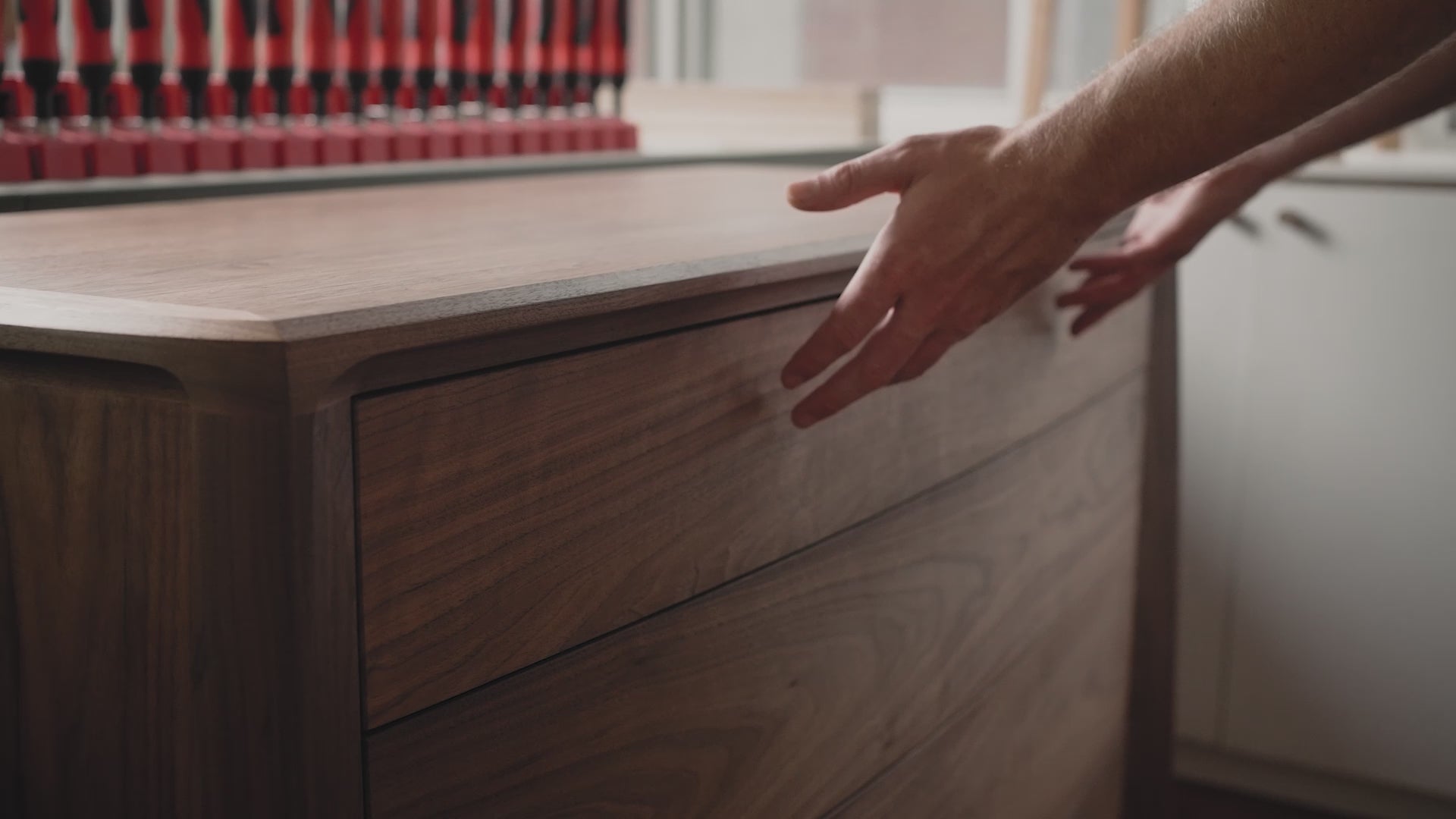 Rhobie is a curvaceous fellow. Steady's award-winning dresser scarcely bears a single straight line. Our signature piece, it features a compound-curved front, exquisite push-to-open, soft-close drawers and our signature top detailing. The Rhobie is everything you'd expect of an heirloom-quality piece.